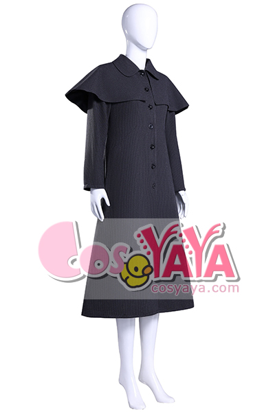 ウェンズデー・アダムス風ブラックツイードプレミアムコート | レディースブラックロングコート | ジェナ・オルテガコスプレ衣装 Cosyaya通販 送料無料